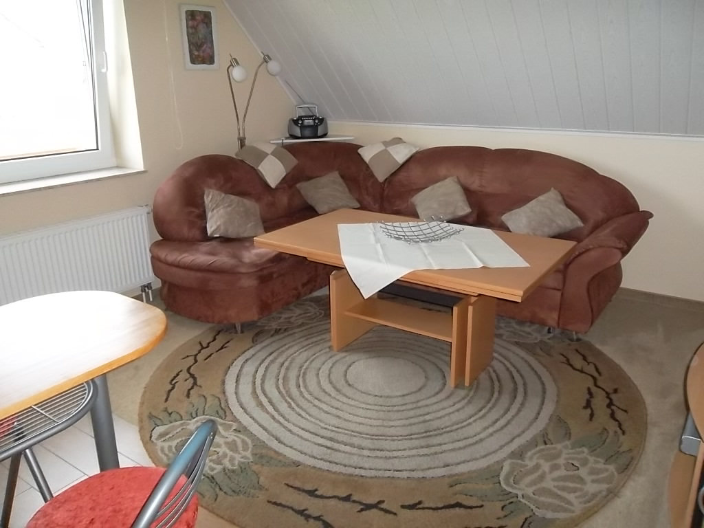 Der gemütliche Wohnbereich bietet eine Sitzgruppe mit Polstereckcouch, Kabel-TV (81 cm), CD-Radio, DVD-Player, Spiele, Festnetztelefonie und W-LAN. (Internetanschluss direkt, ist im Gastzimmer gegeben). | ||||||||||||||||||||||||||||||||||||||||||||||||||||||||||||||||||||||||||||||||||